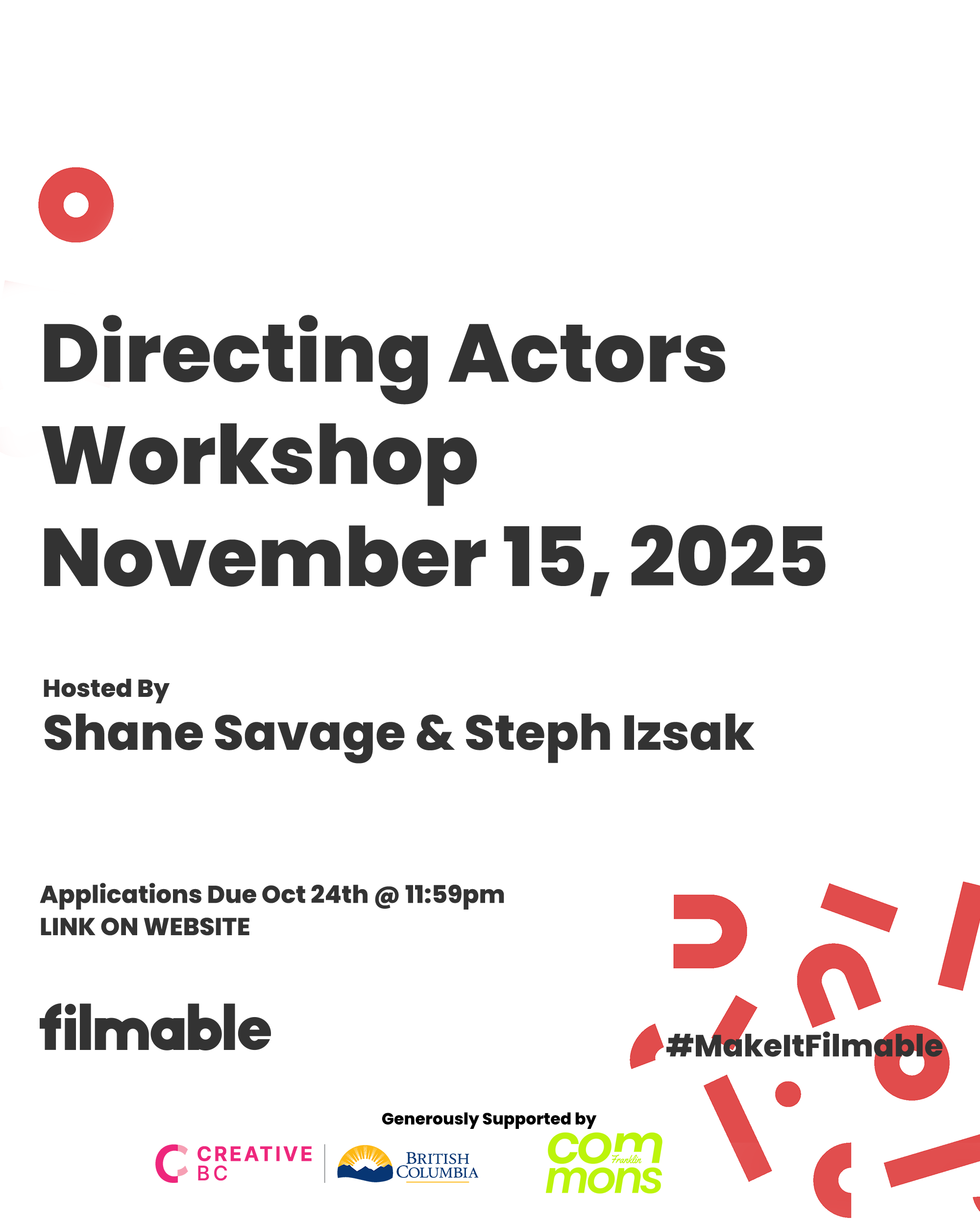 We will ask each participant to pay a commitment fee of $25 which will go towards refreshments, snacks and helping Filmable continue offering accessible opportunities to our community.
